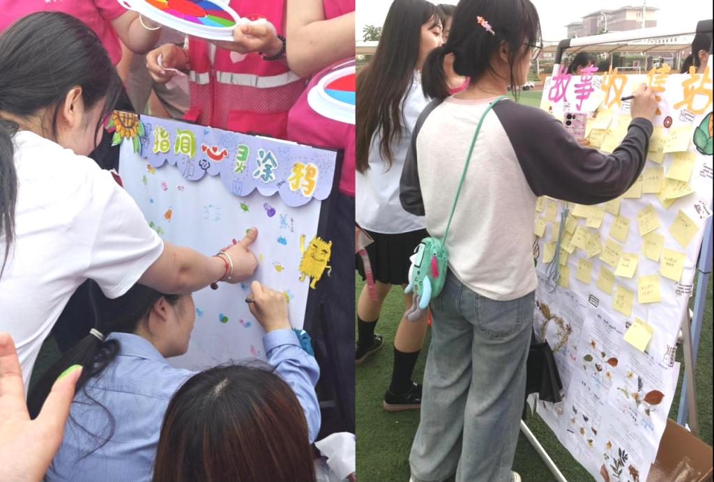 “故事换花·交换心灵的芬芳”邀请同学们分享一个温暖的小故事,即可换取一支鲜花。许多同学讲述了关于友情、亲情或成长中的感动瞬间,在倾诉与倾听中,心灵得到慰藉,而鲜花则成为这份温暖的见证。“同心协力·欢乐颠球赛”让同学们组队挑战,通过默契配合完成颠球任务,培养团队精神和集体合作意识。欢声笑语中,大家体会到合作与信任的重要性,增强了集体归属感。活动现场学生们热情高涨,积极参与,在充满惊喜的互动体验中放松心情、凝神聚力,收获心灵成长。