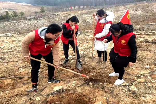 来自多家市直团组织及两区的多名青年志愿者参加了本次活动。在植树现场,大家有序分工,拎水的,挖坑的,扛树苗的,浇水的,来回穿梭,井井有条。截止中午十一点,志愿者们圆满的完成了植树任务。圆满的完成了植树任务。