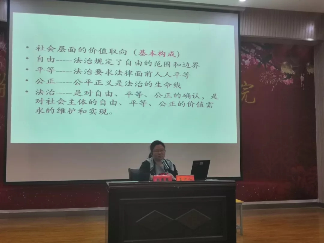当代大学生是21世纪的接班人,应高举习近平新时代中国特色社会主义思想伟大旗帜,积极培育和践行社会主义核心价值观,坚定信念成为依法治国的坚定者和捍卫者。讲座后,同学们纷纷表示:将加强法治意识学习,努力工作,用实际行动为社会主义核心价值观代言,传递校园正能量。