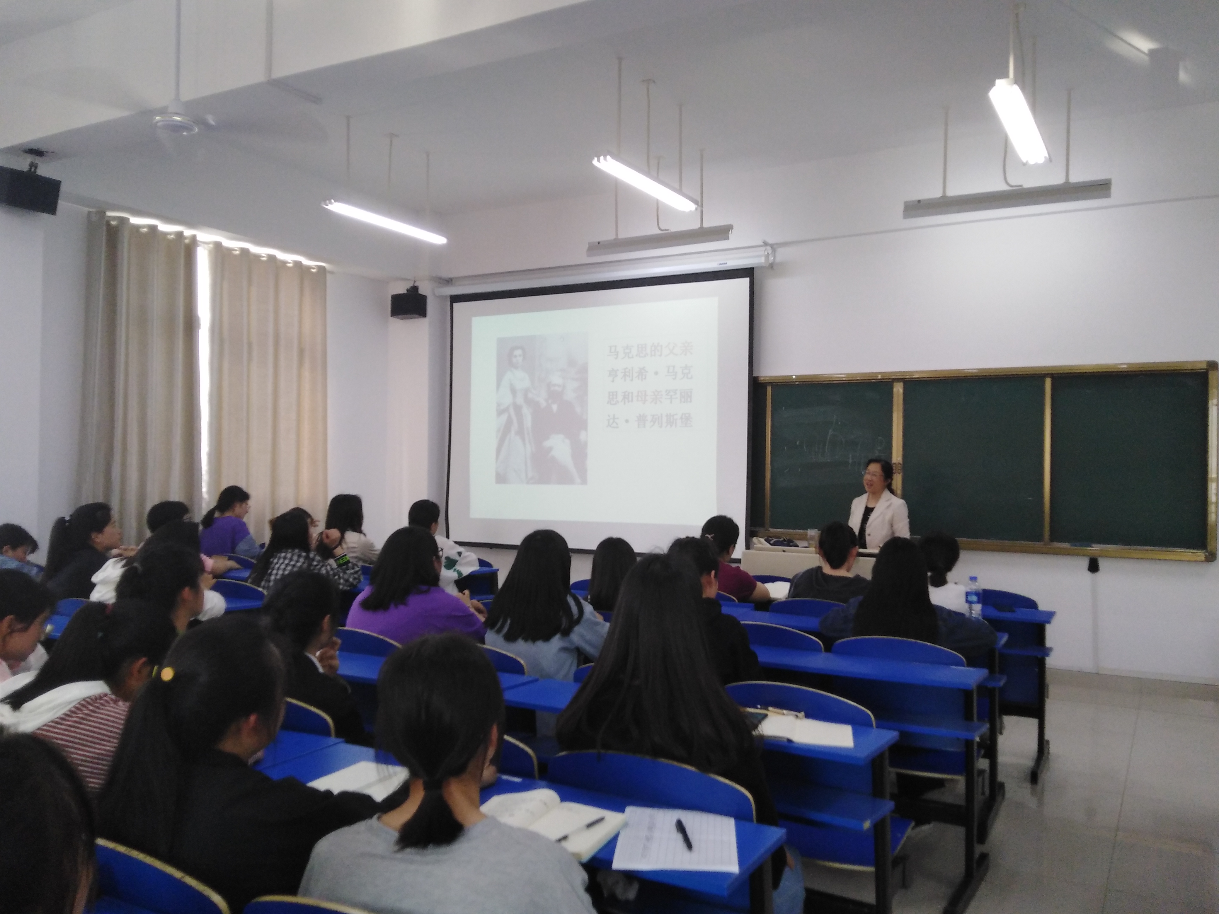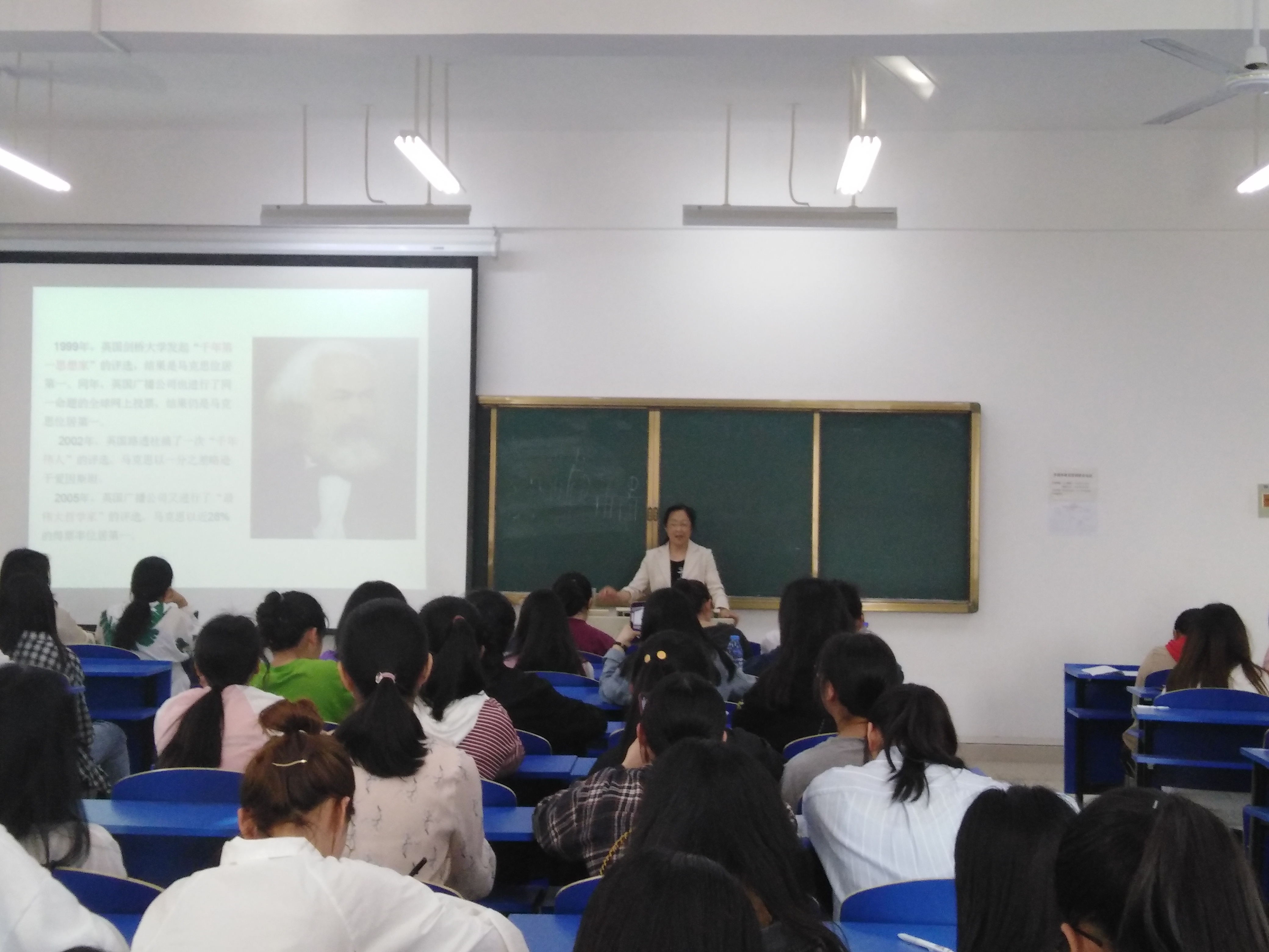 为使我院青马学员增进对马克思的生平、革命实践、理论贡献和精神境界的了解,进一步加深对马克思主义基本原理和习近平新时代中国特色社会主义思想的理解,引领新时代青年学生坚定马克思信仰,4月18日下午,我院特开展“青马工程”第四讲。本次讲座于b1 302教室举行,特邀我院思政部汤新芳老师为青马学子做题为《人物纪实——思想伟人马克思》的讲座。