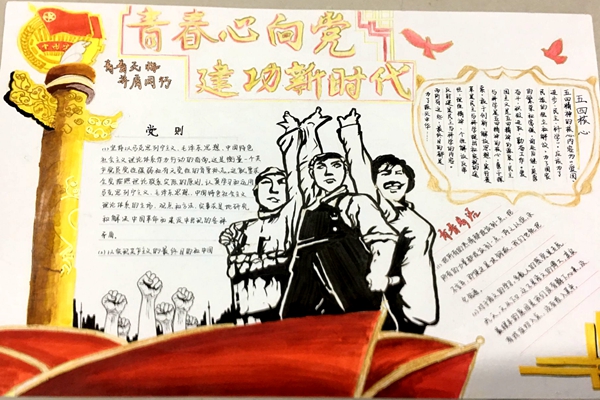 与此同时,4月底,院团委还组织开展了“青春心向党•建功新时代”主题手抄报大赛。全院共213份作品参加评比,各班级围绕“强化主题宣讲、强化文化熏陶、强化氛围营造”组织开展,同学们踊跃参与积极作为。各班手抄报主题突出鲜明、内容充实、版面设计新颖、富有特色,洋溢着青春与激情。作品既弘扬了五四精神,又传达了同学们对伟大祖国的美好祝愿。
