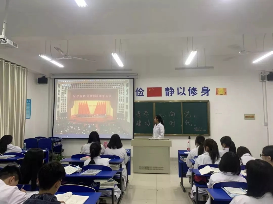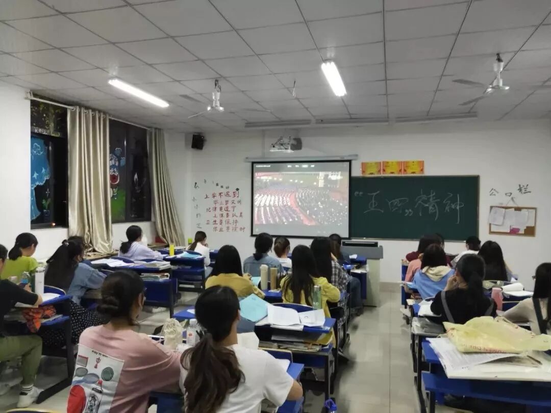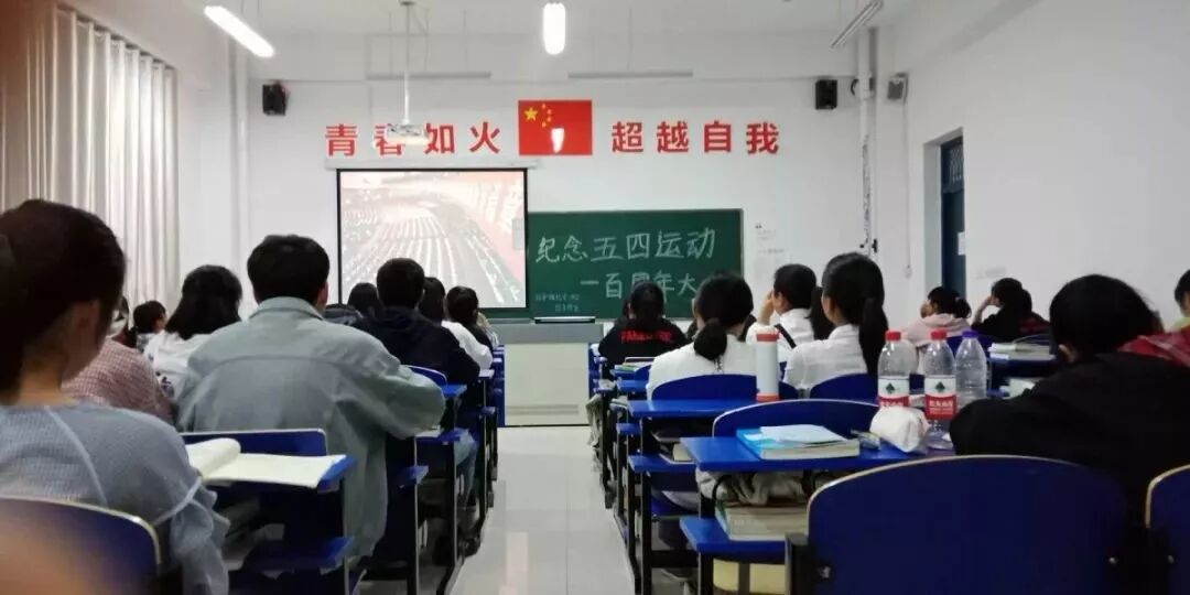 为深入学习习近平总书记在纪念五四运动100周年大会上的重要讲话,引导和激励广大青年学子大力发扬以爱国主义为核心的五四精神,不忘跟党初心,牢记青春使命,5•4青年节当晚,学院组织各班级集中观看纪念五四运动100周年大会,聆听总书记讲话,并广泛开展主题团日活动。我院师生在教室通过网络、电脑等媒介,收看了大会实况。