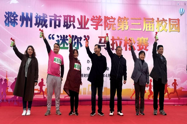 根据安徽省教育厅《关于在全省高校推行公共体育艺术教育俱乐部制教学改革的意见》通知精神,为倡导大学生“走出教室、走出宿舍、走下网络、走向操场”,积极参与跑步健身活动,锻炼强健体魄、展现良好风貌,我院第三届校园“迷你”马拉松赛于4月7日下午成功举办。下午16:30,比赛在南广场准时鸣笛开跑。出席开幕式的有院党委委员、副院长施向阳,院党委委员、工会主席胡墨农,院党委委员、教务处长、院体委副主任王树青,教育系党总支书记钱庆兵,医学系党总支书记吴惠珍,管理系党总支书记陈兴旺,院团委副书记陈婷婷以及院体育工作委员会成员和相关系部的领导和500名师生共同参加了本次活动。此次比赛由院体育部主办,工会、院团委协办。