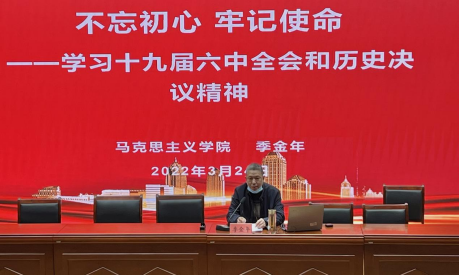 开班仪式结束后,季金年作“不忘初心 牢记使命—学习党的十九届六中全会和历史决议精神”专题培训。季金年在讲课中深刻阐释了“中国共产党是什么,干什么”,用中国共产党一次次的奋斗历程、科学决策让学员充分感受到中国共产党的英明领导,勉励学员们牢记初心使命,坚定理想信念,永远听党话、跟党走。