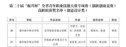 近日,第二十届“振兴杯”全省青年职业技能大赛获奖名单出炉,我校2项作品《医用智能消毒垃圾桶》和《宇航蚁IP形象设计与应用》被授予铜奖,又一大赛实现零的突破!