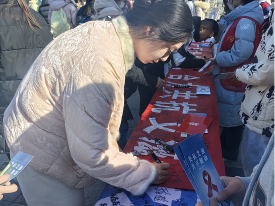 活动现场,志愿者发放宣传材料,宣讲艾滋病知识、预防控制策略、病毒传播途径等多方面内容,旨在倡导关爱、理解和支持艾滋病感染者,推动艾滋病防治工作的深入开展。参加活动的师生自发签名,表达对艾滋病患者的关心和支持,同时呼吁更多的人加入到预防和治疗艾滋病工作中来。