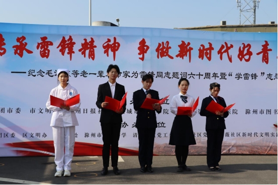 为深入学习贯彻党的二十大精神,扎实开展“大学生社区实践计划”,推动形成学校与街道社区良性互动、协同发展的良好格局,31日,60个“学雷锋纪念日”到来之际,我校在南广场举行2023年大学生社区实践计划暨雷锋月启动活动。活动由校团委书记陈婷婷主持,各二级学院师生代表80余人参加。