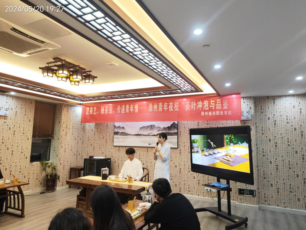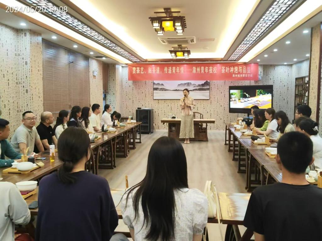 为进一步拓宽共青团服务青年的平台阵地,紧密结合滁州市青年群体的发展需求,本周,滁州市青年夜校之茶艺品鉴课程在我校开课。来自滁州市各单位30余名青年汇聚在我校茶艺大师工作室中,一起赏茶艺、触茶道。我校清韵茶艺社5名优秀社员为青年们开展了一堂别开生面的茶艺课。