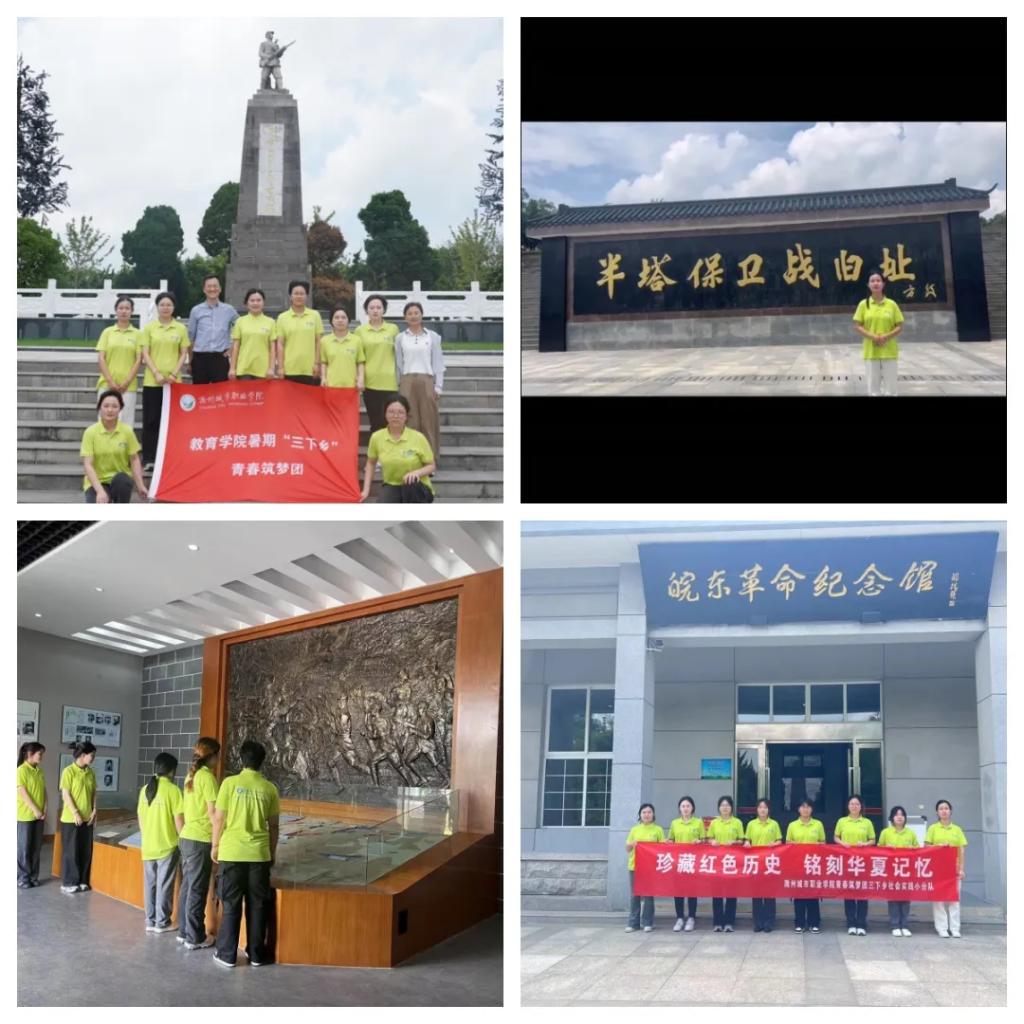 爱国主义教育实践团将红色资源与社会主义核心价值观相结合,生动地开展了一次“行走的思政课”。实践团队赴凤阳小岗村、中共中央中原局扩大会议旧址、藕塘烈士纪念馆、天长抗大八分校红色基地、明光石坝烈士陵园、池河红色文化广场等地开展红色教育活动。队员们在光辉思想的洗礼下提振艰苦奋斗、奋发有为的精气神,永葆革命初心和革命斗志。