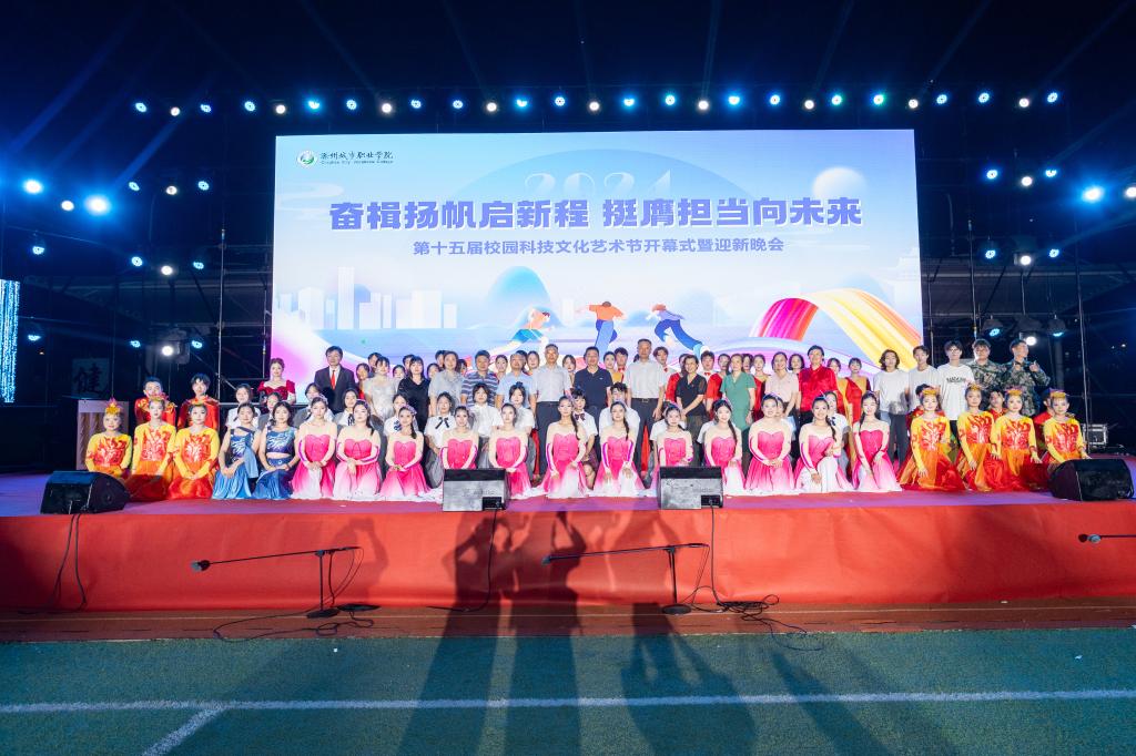 整场晚会集民族舞、古典舞、器乐合奏、表演唱、朗诵等多种艺术形式为一体,给同学们带来一场盛大的视觉盛宴。此次晚会的成功举办承载了全校师生对广大新生学子的真诚关怀和殷殷嘱托,同时也拉开了学校第十五届校园科技文化艺术节的帷幕。多年来,学校以校园科技文化艺术节为抓手,将校园文化活动与专业建设、专业特色有机结合,深化落实“三全育人”综合改革。今后,学校将持续坚持立德树人根本任务,引领并激励广大青年学子树立远大理想,砥砺强国之志,在全面建设社会主义现代化国家的火热实践中书写有为青春。(文:杨阳,图:罗航宇,初审:陈冉,复审:杨静怡,终审:陈婷婷)