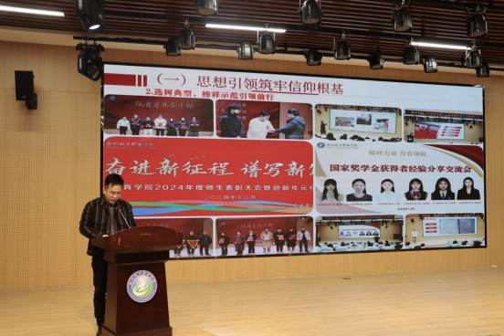 各学院团总支从思想政治引领、基层组织建设、校园文化活动、社会实践开展、创新创业成果等方面出发,亮成绩、对标杆、找不足,认真总结2024年度工作,谋划2025年工作任务和努力方向,汇报内容详实、特色鲜明,展示了学院共青团一年来的工作成果,彰显出共青团组织积极向上、奋发有为的精神风貌。