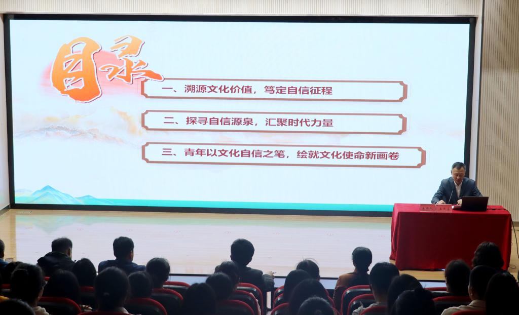 王燕永作题为《坚定文化自信,建设社会主义文化强国》的专题报告。报告深入浅出地分析文化和文化自信的内涵,深度剖析坚定文化自信的水之源、木之本,为青年同学们深刻理解社会主义文化强国建设的重要意义提供了清晰的指引,也为青年学生在新时代如何坚定文化自信、担当文化使命指明了方向。会后,与会青年纷纷表示定将认真学习领会报告精神,将所学所思运用到实际行动中去,努力成长为又红又专、德才兼备、全面发展的新时代青年。