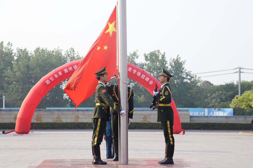 7时20分,升旗仪式正式开始。国旗护卫队迈着整齐划一、铿锵有力的步伐,护送国旗走向升旗台。全体师生面向国旗肃立致礼,凝眸注视共唱国歌,五星红旗冉冉升起,在熠熠晨光中迎风飘扬。