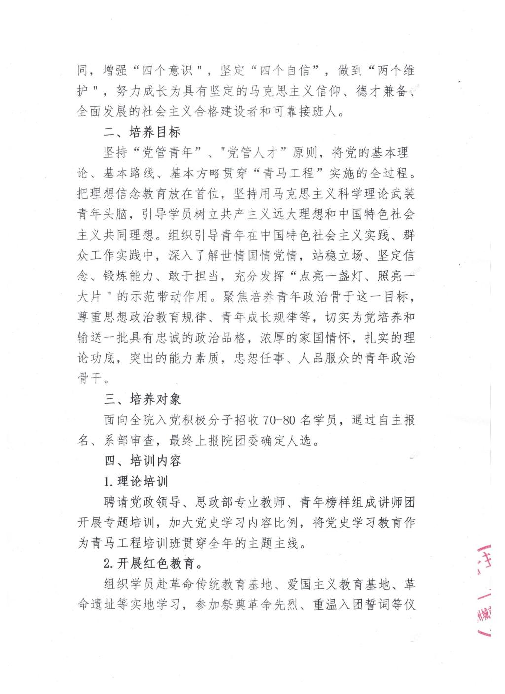 2021年校级青马工程学员共70人,院系级青马工程学院共430人,附培养方案: