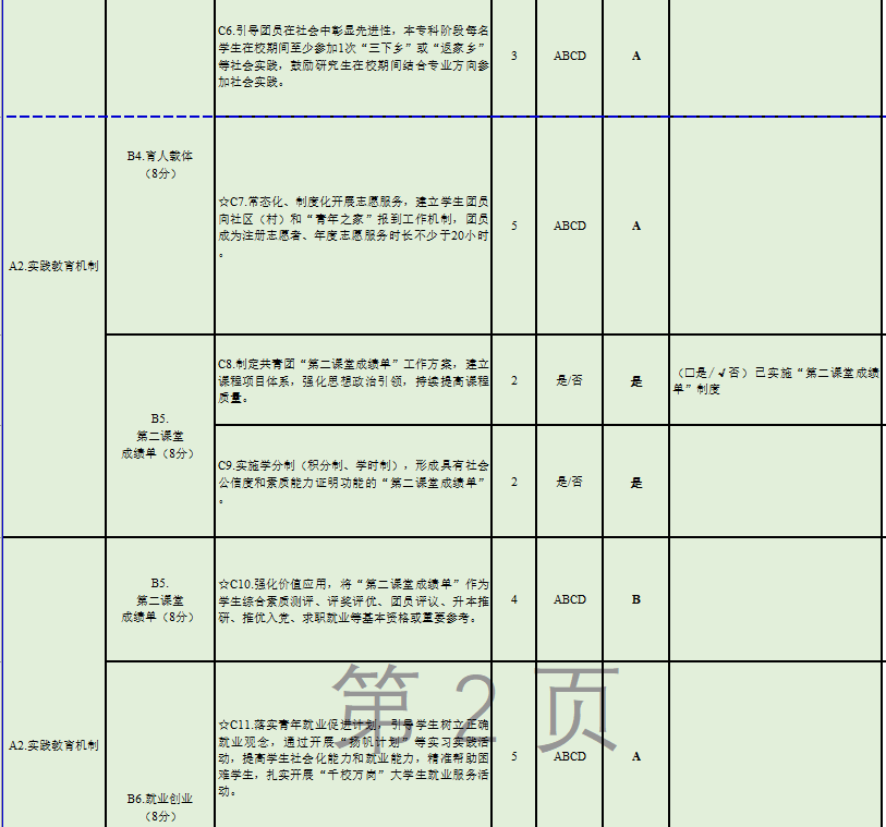 (二)健全指导落实机制。按照深化新时代教育督导体制机制改革的要求,将“党建带团建”纳入教育督导内容。学院正在研究完善团干部在课时计算、职称评定、职级待遇、工作考核等方面的保障政策。