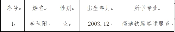 据全国项目办、省项目办2025年大学生志愿服务西部计划工作安排,按照着“公平、公正、公开、择优”的原则,经学生自主报名、材料审核、笔试、面试、心理测试、体检等环节,并报经安徽省项目办批准,拟录取李秋阳同学为2025年西部计划志愿者,现将拟录取人员予以公示: