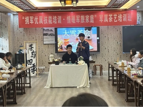12 月 6 日下午 ,清韵茶艺社在茶艺实训室以大雪节气为契机,举办了一场大雪茶会活动。此次活动旨在汇聚社团成员,共同领略茶艺之美、品味茶韵悠长、感悟茶道精神,传承中华茶文化。活动伊始,副社长带领社员们系统复习了此前活动中所学的茶艺知识与技能,从茶具的精心布置,到每一杯茶的冲泡方式,社员们在实践中重温茶艺的精妙,感受着大雪时节茶所传递的独特温暖与惬意,整个茶艺室茶香四溢,气氛热烈而融洽。