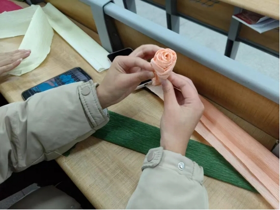 12月4日下午,DIY社团在润心楼307教室举办了皱纹纸系列——花卉制作活动。活动开始,社团负责人董舒活动进行了简短的介绍,强调了制作过程中的注意事项,并鼓励大家发挥创意,制作出自己内心喜欢的花!