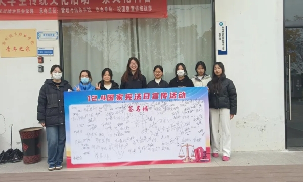 12月4日,青年法学社围绕“大力弘扬宪法精神,推动进一步全面深化改革”主题,面向全校师生开展宪法“我来答”、谜语“我来猜”、宪法“签名墙”活动。