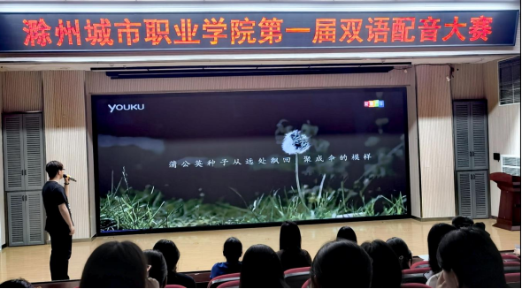 4月23日,由校团委主办、大学生英语俱乐部与薪火普通话训练营联合承办的首届双语配音比赛于图文中心四楼报告厅成功举办。本次活动以"“音”为有你,“声”动校园"为主题,旨在传承中华优秀传统文化,丰富校园文化内涵,推进语言艺术实践教学,提升学生创新思维与艺术表现能力,进一步坚定文化自信。