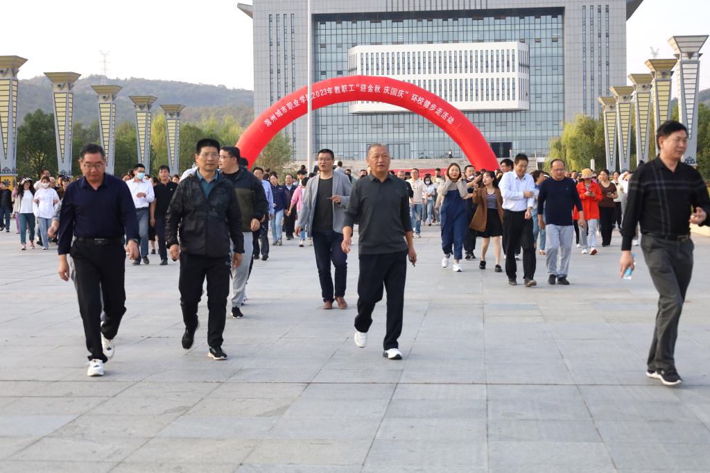 为深入贯彻党的二十大报告关于推进健康中国建设要求,进一步引领广大教职工增强体质,提升团队凝聚力,10月26日下午,我校工会隆重举行2023年“迎金秋庆国庆”教职工环校健步走活动。校领导施向阳、程一斌、徐云川、杨如江、高国柱和工会主席钱庆兵参加活动并为活动鸣枪发令,活动吸引了全院10个分工会500多名会员参加。