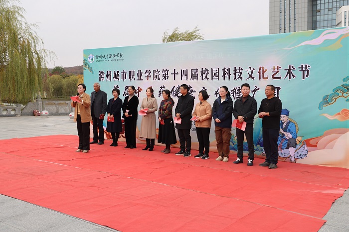 为深入贯彻落实习近平总书记重要指示精神,推动中医药文化繁荣发展,着力赓续中国优秀传统文化,11月22日,学校第十四届校园科技文化艺术节首届中医药健康文化推广活动开幕式在学校南广场隆重举行。党委副书记牛春雨,党委委员、副校长吴惠珍,工会主席钱庆兵,图书馆馆长陈素霞,团委副书记杨静怡出席开幕式,医学院院长毕璧,医学院副院长徐旭,各企业家代表及各学院师生代表参加开幕式,开幕式由医学院党总支书记周慧主持。