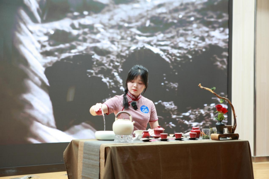 经过初赛和半决赛选拔,12名选手进入茶文化创新大赛决赛。在完成茶文化基础知识笔试和规定茶艺比赛比赛后,12名选手现场进行了创新茶艺表演。选手们或着传统茶服,或着典雅旗袍,自设主题、茶席,温具、置茶、冲泡、奉茶,一双双巧手在茶席间流转,淋漓尽致地展现着精妙茶艺,娴熟又温婉的表演,赢得在场观众的阵阵掌声。评委根据参赛选手表演的创新性、仪容仪表、茶艺展示、茶汤质量和解说五个方面进行评分,综合三项成绩,最终,22旅游高专班刘雯雯、22小教高专4班曹瑞佳荣获一等奖。