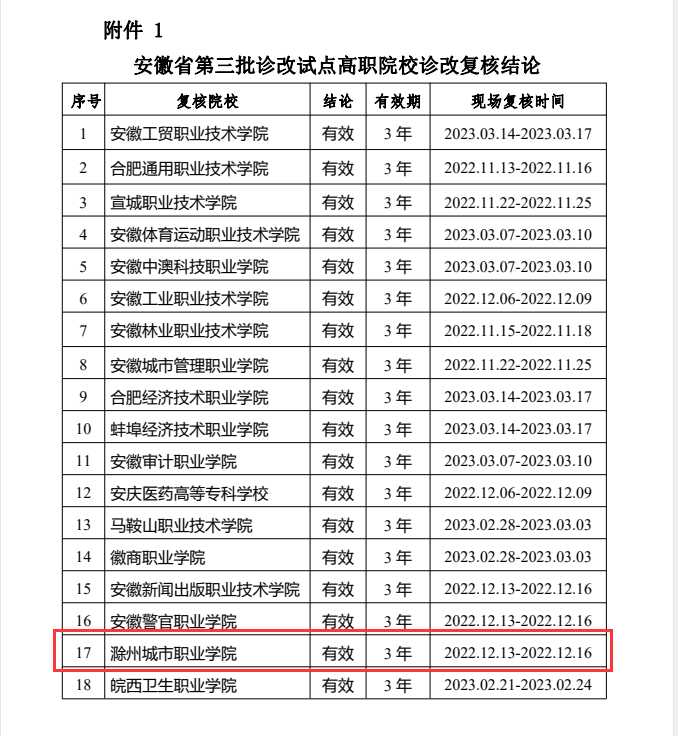 4月12日,安徽省教育厅公布了安徽省第三批诊改试点高职院校诊改复核结论,我校顺利通过诊改复核,诊改结论为“有效”。
