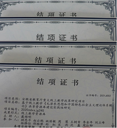 3.教育科研守正创新。学校鼓励一线思政课教师特别是年轻教师积极投身教科研工作,马院教育科研取得了丰硕的成功:主持省级及以上科研项目6项,校级科研项目12项;省级及以上质量工程23项,校级质量工程15项,安徽省职成教课题4项。获2019年省级教学成果奖三等奖1项,公开发表教科研论文40余篇。