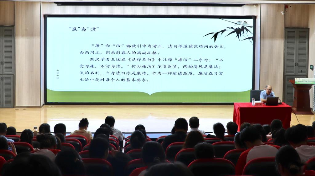 6月18日下午,学校在图文中心四楼报告厅举办2025年“青马工程”培训班第四讲——“廉心若水润无声 清风盈怀尘不染”。本次讲座邀请校党委委员、纪委书记池鹏担任主讲,管理与信息学院党总支、马克思主义学院党总支、机关第一党支部全体党员及2025年“青马工程”培训班全体成员参加。