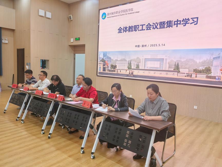 5月14日下午,医学院在院报告厅召开教职工大会暨集中学习会议。会议系统部署学院党建、教学、管理重点工作,并开展专项文件学习与职责分工研讨。会议由医学院院长左晶晶主持,校党委委员、副校长曹士东出席会议并讲话,全体教职工参会。会议伊始,左晶晶宣读了丁时磊同志的聘任文件。丁时磊作表态发言,表示将立足岗位职责,全力推进学院专业建设与教学改革。党总支书记周慧强调,2025年学院将重点推进“党建+学生管理”深度融...