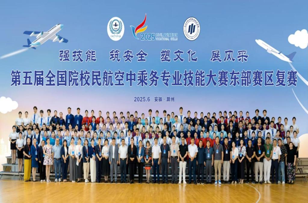 6月22日,第五届全国院校民航空中乘务专业技能大赛东部赛区复赛在滁州市中航未来华东航空实训基地圆满落幕。这场由中国航空运输协会主办,以 “强技能、筑安全、塑文化、展风采”为主题的赛事,汇聚山东、江苏、浙江、上海、福建、江西、安徽7省市24所院校的130名精英选手同场竞技,上演了一场民航技能的精彩对决。本次东部复赛于6月21日-22日火热开展。我校代表队由空中乘务专业3位老师带队指导参加,24空乘高专班夏晓涵、陶永...