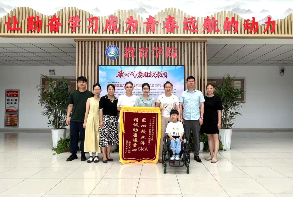 教育学院长期聚焦社会服务,通过“送教上门+职业体验+医教融合”模式,将专业教育与公益实践深度绑定,既为特殊儿童送去关爱,也推动学前教育、小学教育专业课程改革,实现“育人”与“服务”双向赋能。6月23日,教育学院迎来特殊致谢:苏滁康复医院领导与SMA(脊髓性肌萎缩症)儿童家长代表专程送来锦旗,感谢学院今年开展开展的系列“送教上门”服务与数智化职业体验课程帮扶。院长徐立娟等一同接待,双方就深化医教融合达成...
