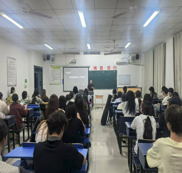 为助力音乐系新生快速融入大学生活、锚定专业发展方向,9月10日晚七点,我院于艺馨楼406教室精心举办新生入学教育专题活动。本次活动由音乐系主任霍雪娇、副主任潘瑶联袂主持,25级辅导员及全体音乐专业新生齐聚一堂,现场氛围热烈温馨,满溢着艺术教育的人文温度。活动伊始,潘瑶副主任围绕“音乐教育专业的初心与使命”为主题展开深度分享。她结合自身教学经验,从专业课程体系、实践能力培养、职业素养塑造三个维度进行详细...