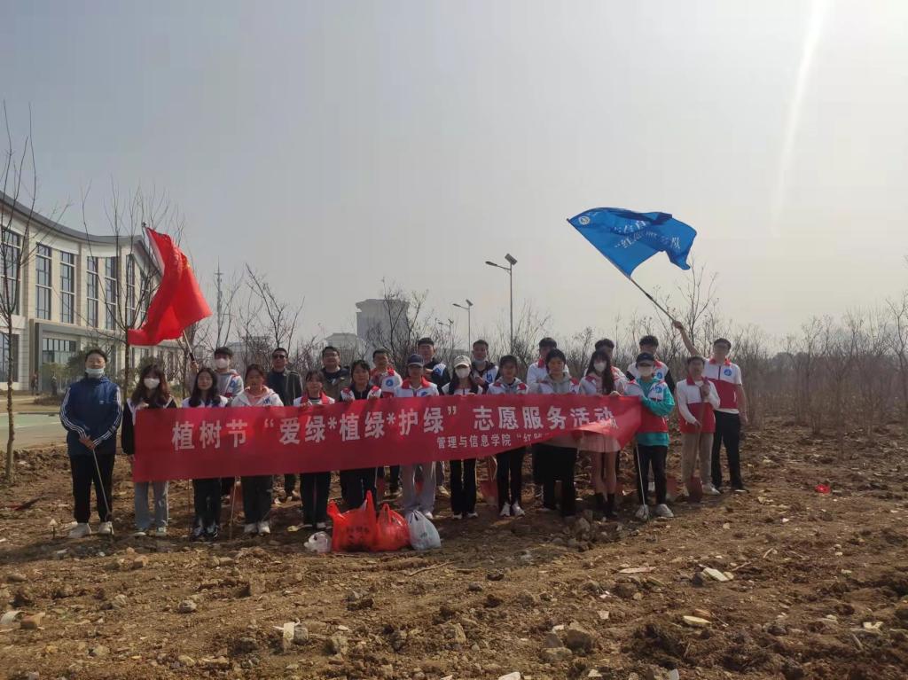 又是一年春光好,植树添绿正当时。3月12日,在我国第44个植树节到来之际,管理与信息学院红踔堂志愿者服务队在学校开展义务植树、美化校园活动。院党总支书记陈兴旺、教学秘书韩峰、团总支书记杨静怡和师生代表等一起参加植树活动。植树活动开始后,大家纷纷挽起袖子,拿起铁锹,积极投入到义务植树活动中。大家配合默契,干劲十足,或挥锹铲土,或扶苗培土,或踏土夯实,每道工序都专注细致、一丝不苟,合力栽下一棵棵树苗,一...