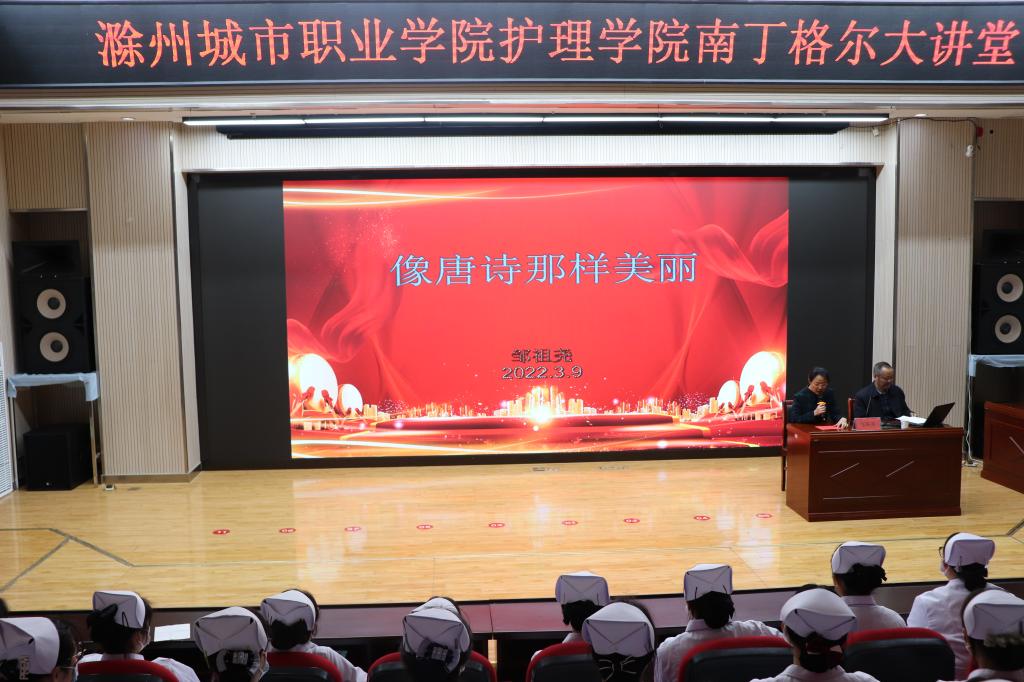 为贯彻党的教育方针,落实德育铸魂、智育提质、体教融合、美育熏陶、劳动促进“五大行动”的部署要求,全面提高育人质量。3月10日下午,护理学院举办2022年南丁格尔大讲堂第一讲,邀请我校邹祖尧教授作了题为《像唐诗那样美丽》的讲座。学院党总支书记蔡季秋主持讲座,学院师生近300人参加了学习。主讲人为讲座做了精心准备,收集了契合主题又耳熟能详的唐诗名篇,综合运用多种欣赏形式,寓教于乐、寓教于美。整场讲座深入浅出...