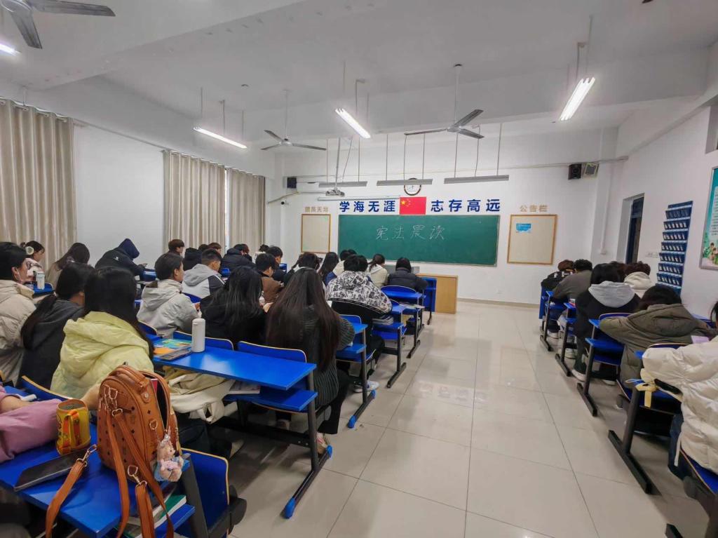 为进一步弘扬宪法精神,增强师生法治意识,12月4日,管理与信息学院组织开展了宪法晨读活动。本次宪法晨读活动覆盖全院47个团支部,吸引了多达1500名学生踊跃参与。活动当天,各班级教室里学生坐姿端正,齐声诵读宪法部分条款,声音洪亮,气势高昂,让宪法精神声声入耳,法律意识字字入心。晨读结束后,同学们一同聆听了宪法宣传歌曲《宪法伴我们成长》,在激昂的歌声中进一步感受宪法的魅力。宪法晨读不只是简单的朗读,更是一...