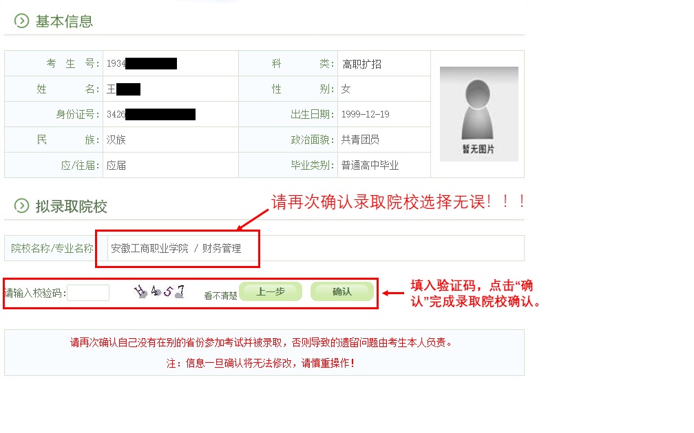 Ø 一旦确认了录取院校,是不能再次修改的,请谨慎操作!!!