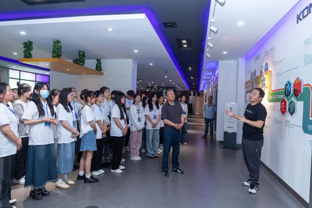 在康佳家电展厅,同学们通过与最新高科技产品成果的零距离接触,感受了科技与创新在国家崛起过程中的重要地位。讲解员在介绍康佳招聘、筛选方式后,鼓励同学们要找准定位、勇于创新,带着阳光心态和鸿鹄之志,多看多学多思考,一步一个脚印,一点一滴努力成长成才,在科技强国路上贡献青春力量。