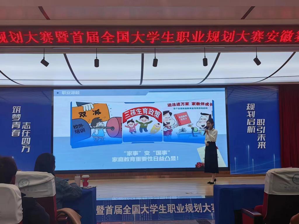 12月18日-23日,第十七届安徽省大学生职业规划大赛暨首届全国大学生职业规划大赛安徽赛区皖南片区就业赛道和成长赛道半决赛分别在安徽工程大学和池州职业技术学院,来自皖南片34所学校的127名选手参加比赛。我校选派四名选手参加比赛,凭借优异表现,4个参赛作品均晋级省决赛。