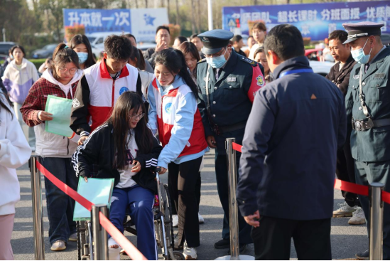 为给考生营造安全、暖心、舒适的考试环境,学校在校园主要道路上设置了清晰的指示牌,设置了准考证打印区、志愿服务站、应急医疗点等爱心助考点,安排100余名志愿者提供指引服务。志愿者们身穿红马甲,热情为考生提供咨询、解决问题,为行动不便的考生提供一对一、点对点护送服务,温暖的话语,耐心的服务,赢得了考生和家长们的高度认可和由衷谢意。