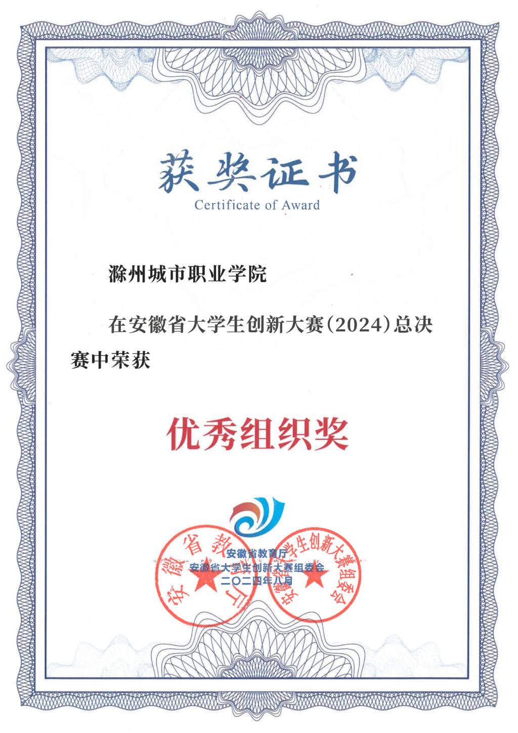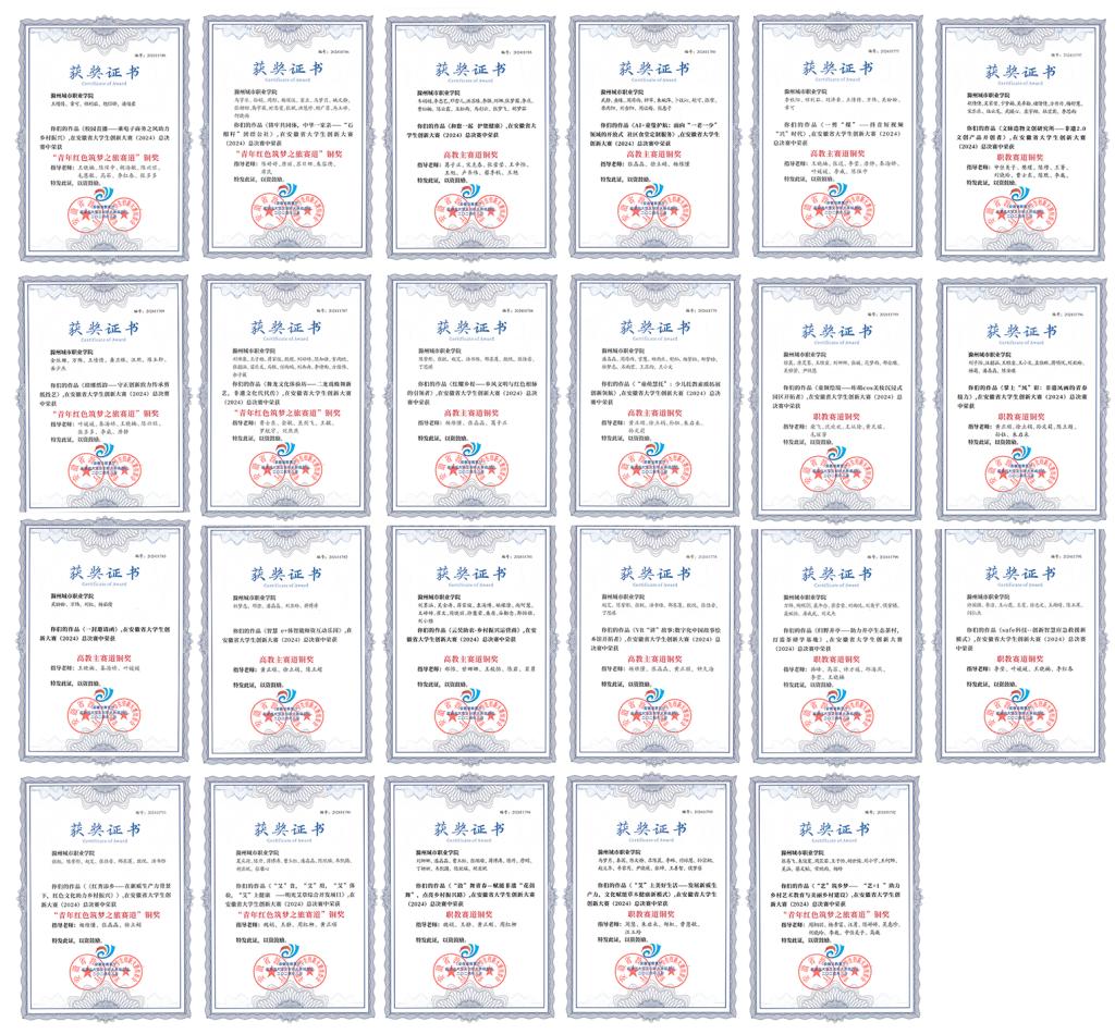 近日,安徽省大学生创新大赛(2024)暨中国国际大学生创新大赛(2024)安徽赛区获奖名单公布。总决赛中,学校取得了1项金奖、1项银奖和23项铜奖的好成绩,荣获优秀组织奖,1位教师获优秀创新创业导师奖,2位老师被评为大赛优秀工作者。