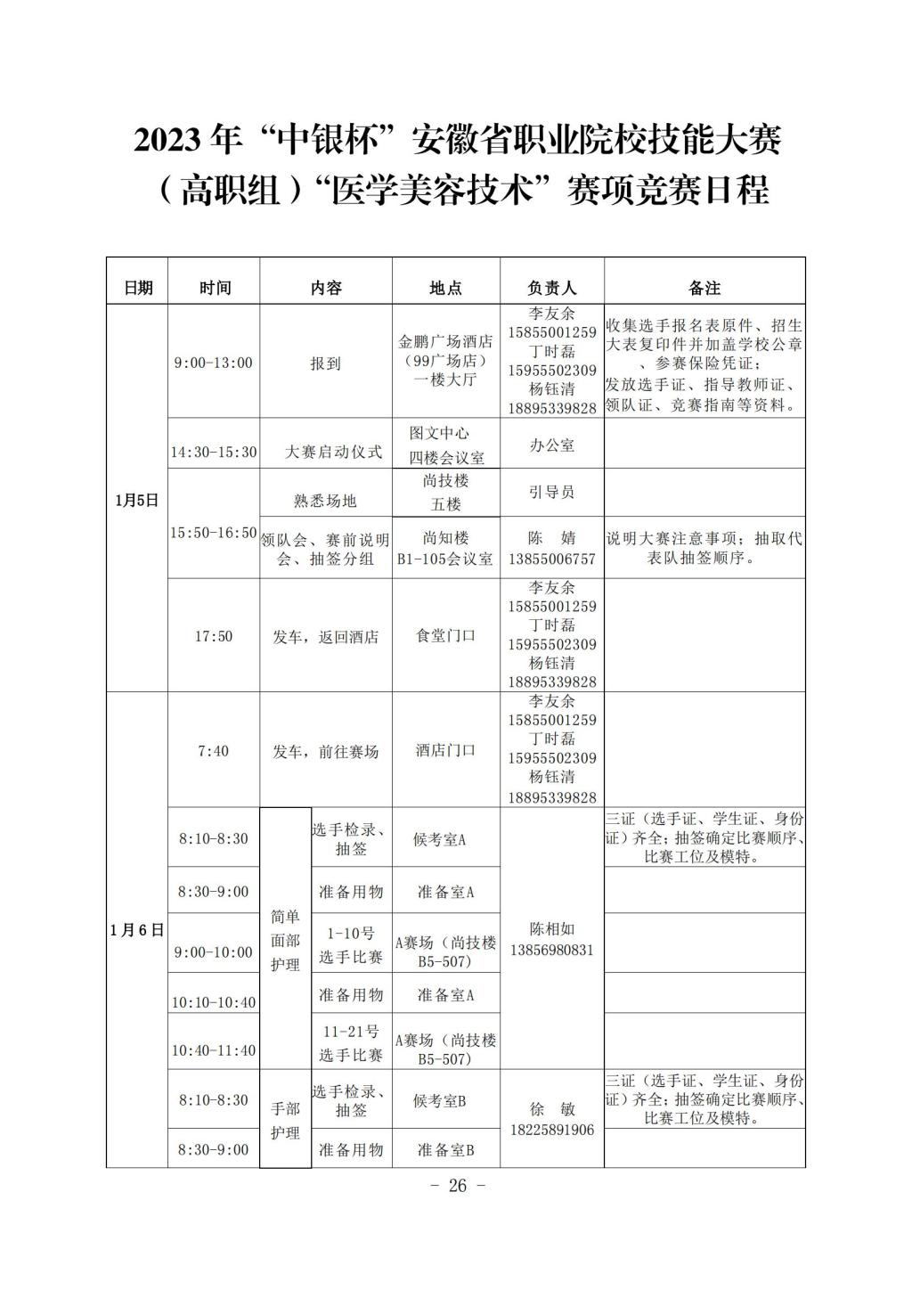 2023 年“中银杯”安徽省职业院校技能大赛(高职组)“医学美容技术”赛项竞赛日程